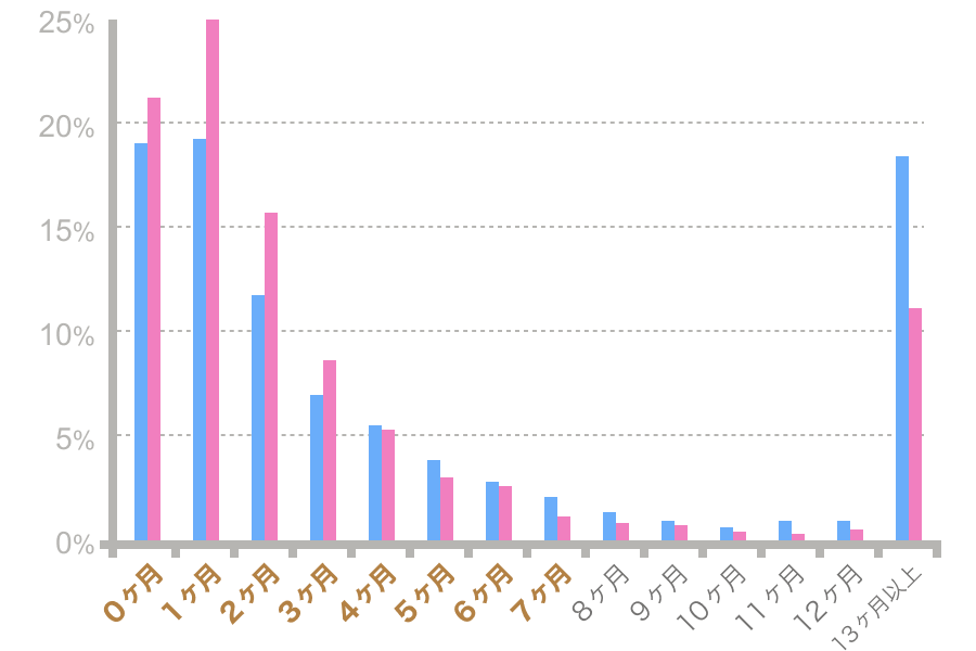 ※退会時アンケートで「パートナーが見つかった」と回答した方のサービス利用期間(2020年4月〜2021年3月)